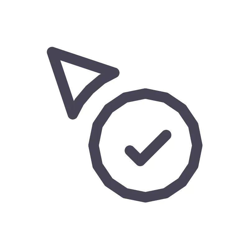 <path d="M16 13L13.5 15.5L12.5 14.5M19 14C19 16.7614 16.7614 19 14 19C11.2386 19 9 16.7614 9 14C9 11.2386 11.2386 9 14 9C16.7614 9 19 11.2386 19 14ZM7 11C7.5 9.5 9.5 7.5 11 7L5 5L7 11Z" stroke="#464455" stroke-linecap="round" stroke-linejoin="round"/>