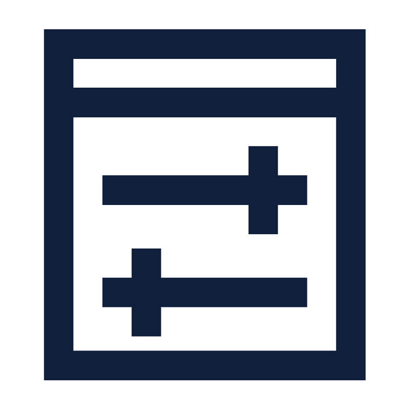 <svg width="800px" height="800px" viewBox="0 0 1024 1024" class="icon" version="1.1" xmlns="http://www.w3.org/2000/svg"><path d="M109.5 73v875.7h802.7V73H109.5z m729.7 72.9v73H182.4v-73h656.8zM182.4 875.7V291.9h656.7v583.8H182.4z" fill="#0F1F3C" /><path d="M693.2 364.9h-72.9v72.9H255.4v73h364.9v73h72.9v-73h73v-73h-73zM401.4 620.3h-73v72.9h-73v73h73v73h73v-73h364.8v-73H401.4z" fill="#0F1F3C" /></svg>