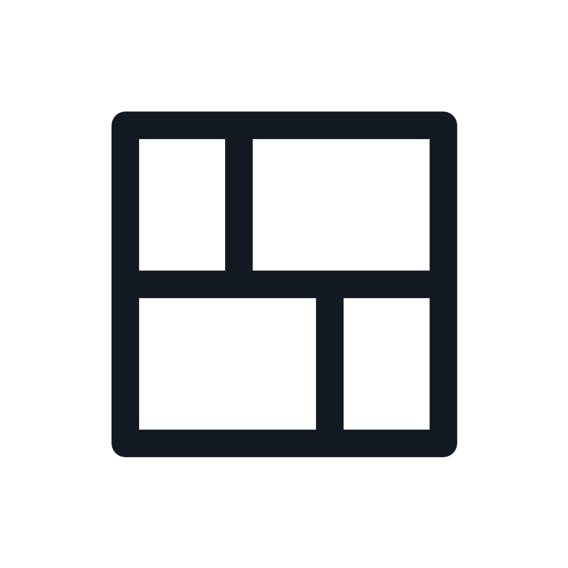 <path d="M14.5 19.5V12.5M10.5 12.5V5.5M5.5 12.5H19.5M5.5 19.5H19.5V5.5H5.5V19.5Z" stroke="#121923" stroke-width="1.2"/>