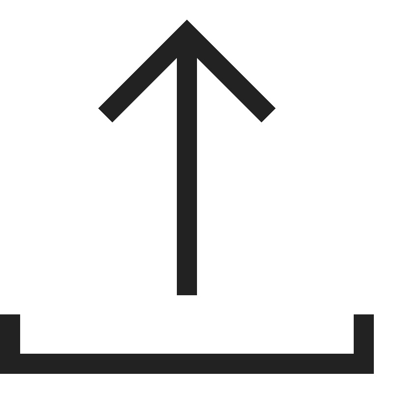 <path d="M 9.5,1 5,5.5 5.7070312,6.2070312 9,2.9140625 V 15 h 1 V 2.9140625 L 13.292969,6.2070312 14,5.5 Z M 0,16 v 3 h 19 v -3 h -1 v 2 H 1 v -2 z" style="fill:#222222; fill-opacity:1; stroke:none; stroke-width:0px;"/>