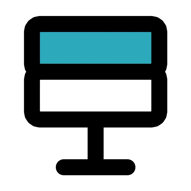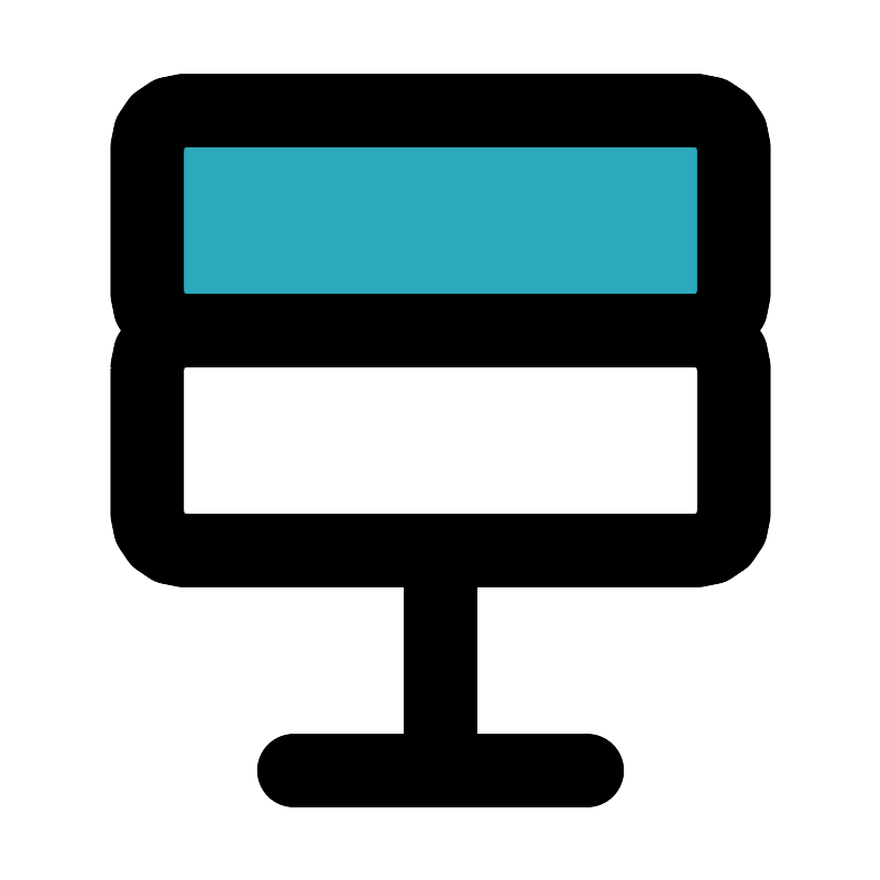 <svg fill="#000000" width="800px" height="800px" viewBox="0 0 24 24" id="database-3" data-name="Flat Line" xmlns="http://www.w3.org/2000/svg" class="icon flat-line"><rect id="secondary" x="4" y="3" width="16" height="6" rx="1" style="fill: rgb(44, 169, 188); stroke-width: 2;"></rect><path id="primary" d="M12,15v6M8,21h8M20,8V4a1,1,0,0,0-1-1H5A1,1,0,0,0,4,4V8A1,1,0,0,0,5,9H19A1,1,0,0,0,20,8Zm0,6V10a1,1,0,0,0-1-1H5a1,1,0,0,0-1,1v4a1,1,0,0,0,1,1H19A1,1,0,0,0,20,14Z" style="fill: none; stroke: rgb(0, 0, 0); stroke-linecap: round; stroke-linejoin: round; stroke-width: 2;"></path></svg>
