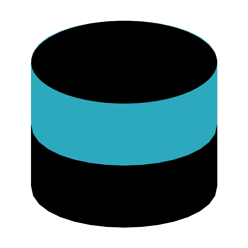 <svg fill="#000000" width="800px" height="800px" viewBox="0 0 24 24" id="database" data-name="Flat Color" xmlns="http://www.w3.org/2000/svg" class="icon flat-color"><path id="primary" d="M12,2C7.53,2,3,3.37,3,6V18c0,2.63,4.53,4,9,4s9-1.37,9-4V6C21,3.37,16.47,2,12,2Z" style="fill: rgb(0, 0, 0);"></path><path id="secondary" d="M12,2C7.53,2,3,3.37,3,6v6c0,2.63,4.53,4,9,4s9-1.37,9-4V6C21,3.37,16.47,2,12,2Z" style="fill: rgb(44, 169, 188);"></path><ellipse id="primary-2" data-name="primary" cx="12" cy="6" rx="9" ry="4" style="fill: rgb(0, 0, 0);"></ellipse></svg>