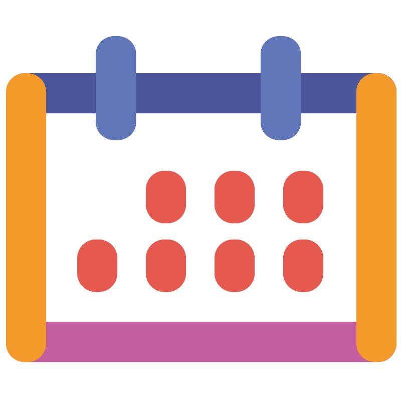 <svg width="800px" height="800px" viewBox="0 0 1024 1024" class="icon" version="1.1" xmlns="http://www.w3.org/2000/svg"><path d="M965.282 186.746H62.449c-25.477 0-46.129 21.177-46.129 47.298v7.139c0 26.121 20.652 47.296 46.129 47.296h902.833c25.48 0 46.131-21.175 46.131-47.296v-7.139c0-26.121-20.65-47.298-46.131-47.298z" fill="#4A5699" /><path d="M965.282 821.697H62.449c-25.477 0-46.129 21.173-46.129 47.296v7.141c0 26.119 20.652 47.297 46.129 47.297h902.833c25.48 0 46.131-21.178 46.131-47.297v-7.141c0-26.123-20.65-47.296-46.131-47.296z" fill="#C45FA0" /><path d="M69.412 186.746H62.33c-26.121 0-47.294 21.177-47.294 47.298v642.09c0 26.119 21.173 47.297 47.294 47.297h7.082c26.121 0 47.294-21.178 47.294-47.297v-642.09c0.001-26.121-21.173-47.298-47.294-47.298zM964.117 186.746h-7.082c-26.119 0-47.296 21.177-47.296 47.298v642.09c0 26.119 21.177 47.297 47.296 47.297h7.082c26.122 0 47.296-21.178 47.296-47.297v-642.09c0-26.121-21.174-47.298-47.296-47.298z" fill="#F39A2B" /><path d="M426.617 435.818h-7.082c-26.121 0-47.296 21.171-47.296 47.294v38.715c0 26.119 21.175 47.296 47.296 47.296h7.082c26.121 0 47.298-21.177 47.298-47.296v-38.715c0-26.122-21.177-47.294-47.298-47.294zM601.912 435.818h-7.082c-26.118 0-47.292 21.171-47.292 47.294v38.715c0 26.119 21.174 47.296 47.292 47.296h7.082c26.119 0 47.3-21.177 47.3-47.296v-38.715c0-26.122-21.181-47.294-47.3-47.294zM777.211 435.818h-7.082c-26.122 0-47.296 21.171-47.296 47.294v38.715c0 26.119 21.174 47.296 47.296 47.296h7.082c26.119 0 47.292-21.177 47.292-47.296v-38.715c0-26.122-21.173-47.294-47.292-47.294zM777.211 611.22h-7.082c-26.122 0-47.296 21.17-47.296 47.293v38.716c0 26.115 21.174 47.293 47.296 47.293h7.082c26.119 0 47.292-21.178 47.292-47.293v-38.716c0-26.123-21.173-47.293-47.292-47.293zM601.912 611.22h-7.082c-26.118 0-47.292 21.17-47.292 47.293v38.716c0 26.115 21.174 47.293 47.292 47.293h7.082c26.119 0 47.3-21.178 47.3-47.293v-38.716c0-26.123-21.181-47.293-47.3-47.293zM426.617 611.22h-7.082c-26.121 0-47.296 21.17-47.296 47.293v38.716c0 26.115 21.175 47.293 47.296 47.293h7.082c26.121 0 47.298-21.178 47.298-47.293v-38.716c0-26.123-21.177-47.293-47.298-47.293zM251.32 611.22h-7.08c-26.123 0-47.294 21.17-47.294 47.293v38.716c0 26.115 21.171 47.293 47.294 47.293h7.08c26.123 0 47.294-21.178 47.294-47.293v-38.716c0-26.123-21.171-47.293-47.294-47.293z" fill="#E5594F" /><path d="M299.245 91.914h-7.435c-26.125 0-47.296 19.988-47.296 44.649V312.24c0 24.657 21.171 44.649 47.296 44.649h7.435c26.125 0 47.296-19.992 47.296-44.649V136.563c0-24.661-21.172-44.649-47.296-44.649zM719.956 91.914h-7.438c-26.118 0-47.292 19.988-47.292 44.649V312.24c0 24.657 21.174 44.649 47.292 44.649h7.438c26.123 0 47.296-19.992 47.296-44.649V136.563c0-24.661-21.173-44.649-47.296-44.649z" fill="#6277BA" /></svg>