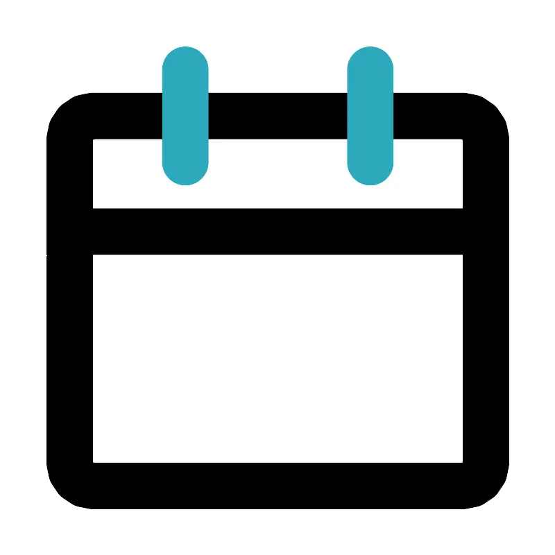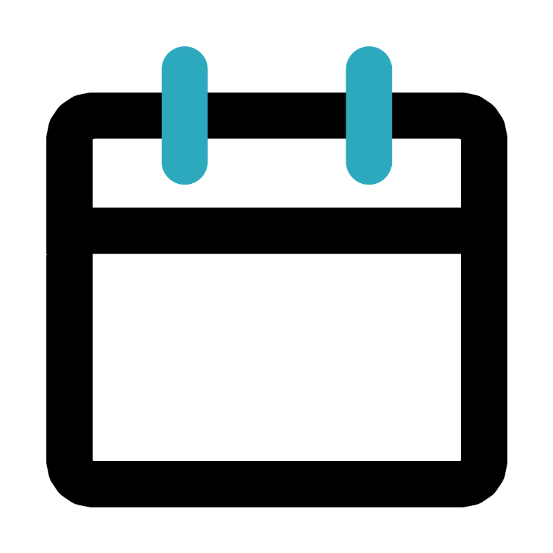 <svg fill="#000000" width="800px" height="800px" viewBox="0 0 24 24" id="date" data-name="Line Color" xmlns="http://www.w3.org/2000/svg" class="icon line-color"><path id="primary" d="M20,21H4a1,1,0,0,1-1-1V10H21V20A1,1,0,0,1,20,21ZM21,6a1,1,0,0,0-1-1H4A1,1,0,0,0,3,6v4H21Z" style="fill: none; stroke: rgb(0, 0, 0); stroke-linecap: round; stroke-linejoin: round; stroke-width: 2;"></path><line id="secondary" x1="16" y1="3" x2="16" y2="7" style="fill: none; stroke: rgb(44, 169, 188); stroke-linecap: round; stroke-linejoin: round; stroke-width: 2;"></line><line id="secondary-2" data-name="secondary" x1="8" y1="3" x2="8" y2="7" style="fill: none; stroke: rgb(44, 169, 188); stroke-linecap: round; stroke-linejoin: round; stroke-width: 2;"></line></svg>