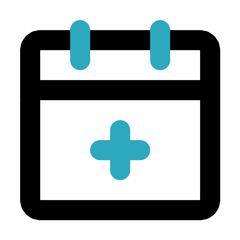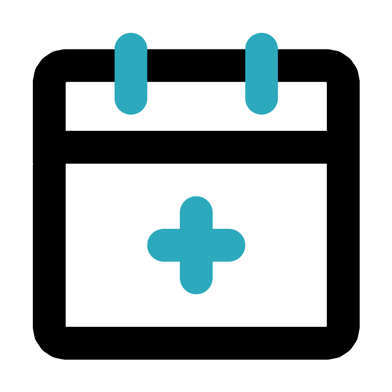 <svg fill="#000000" width="800px" height="800px" viewBox="0 0 24 24" id="date-add" data-name="Line Color" xmlns="http://www.w3.org/2000/svg" class="icon line-color"><path id="primary" d="M20,21H4a1,1,0,0,1-1-1V9H21V20A1,1,0,0,1,20,21ZM21,5a1,1,0,0,0-1-1H4A1,1,0,0,0,3,5V9H21Z" style="fill: none; stroke: rgb(0, 0, 0); stroke-linecap: round; stroke-linejoin: round; stroke-width: 2;"></path><path id="secondary" d="M16,3V6M8,3V6m4,11V13m-2,2h4" style="fill: none; stroke: rgb(44, 169, 188); stroke-linecap: round; stroke-linejoin: round; stroke-width: 2;"></path></svg>