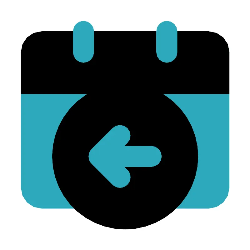 <svg fill="#000000" width="800px" height="800px" viewBox="0 0 24 24" id="date-alt-left" data-name="Flat Color" xmlns="http://www.w3.org/2000/svg" class="icon flat-color"><rect id="secondary" x="2" y="3" width="20" height="17" rx="2" style="fill: rgb(44, 169, 188);"></rect><circle id="primary" cx="12" cy="15" r="7" style="fill: rgb(0, 0, 0);"></circle><path id="primary-2" data-name="primary" d="M20,3H4A2,2,0,0,0,2,5V9H22V5A2,2,0,0,0,20,3Z" style="fill: rgb(0, 0, 0);"></path><path id="secondary-2" data-name="secondary" d="M16,6a1,1,0,0,1-1-1V3a1,1,0,0,1,2,0V5A1,1,0,0,1,16,6ZM9,5V3A1,1,0,0,0,7,3V5A1,1,0,0,0,9,5Zm3.21,12.71a1,1,0,0,0,0-1.42l-.3-.29H14.5a1,1,0,0,0,0-2H11.91l.3-.29a1,1,0,0,0-1.42-1.42l-2,2a1,1,0,0,0,0,1.42l2,2A1,1,0,0,0,12.21,17.71Z" style="fill: rgb(44, 169, 188);"></path></svg>