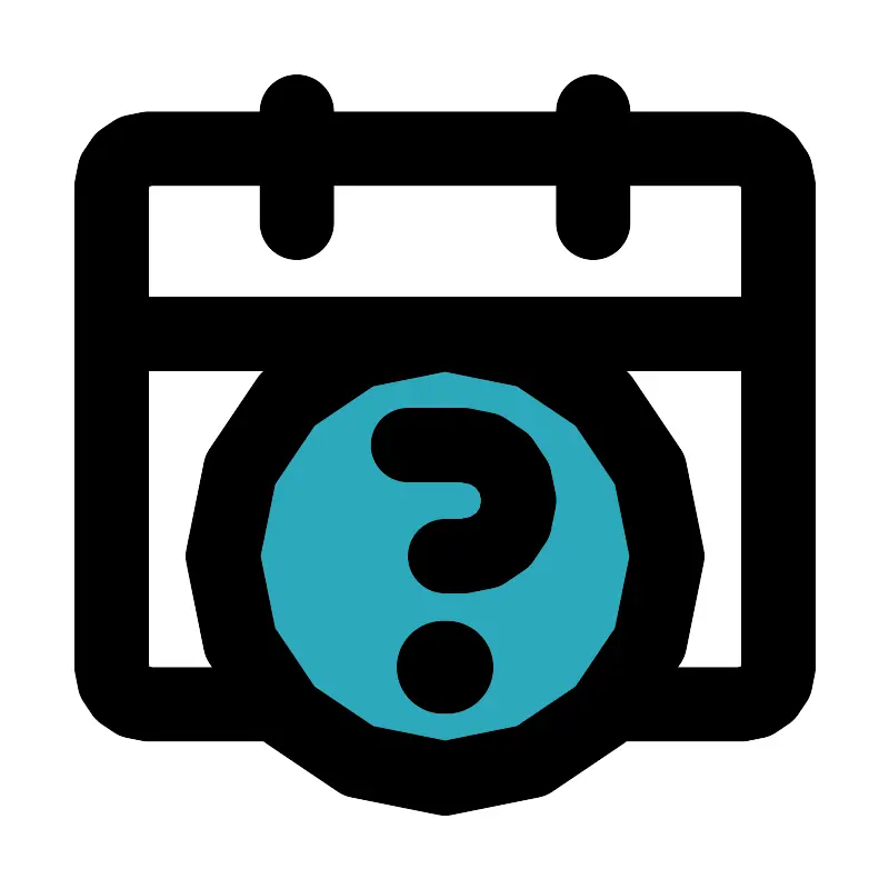 <svg fill="#000000" width="800px" height="800px" viewBox="0 0 24 24" id="date-alt-question" data-name="Flat Line" xmlns="http://www.w3.org/2000/svg" class="icon flat-line"><circle id="secondary" cx="12" cy="15" r="6" style="fill: rgb(44, 169, 188); stroke-width: 2;"></circle><path id="primary" d="M7.54,19H4a1,1,0,0,1-1-1V5A1,1,0,0,1,4,4H20a1,1,0,0,1,1,1V18a1,1,0,0,1-1,1H16.46" style="fill: none; stroke: rgb(0, 0, 0); stroke-linecap: round; stroke-linejoin: round; stroke-width: 2;"></path><path id="primary-2" data-name="primary" d="M12,9a6,6,0,1,0,6,6A6,6,0,0,0,12,9ZM3,9H21M16,3V6M8,3V6" style="fill: none; stroke: rgb(0, 0, 0); stroke-linecap: round; stroke-linejoin: round; stroke-width: 2;"></path><path id="primary-3" data-name="primary" d="M11,12h1.5A1.5,1.5,0,0,1,14,13.5h0A1.5,1.5,0,0,1,12.5,15H12" style="fill: none; stroke: rgb(0, 0, 0); stroke-linecap: round; stroke-linejoin: round; stroke-width: 2;"></path><line id="primary-upstroke" x1="11.95" y1="18" x2="12.05" y2="18" style="fill: none; stroke: rgb(0, 0, 0); stroke-linecap: round; stroke-linejoin: round; stroke-width: 2.5;"></line></svg>