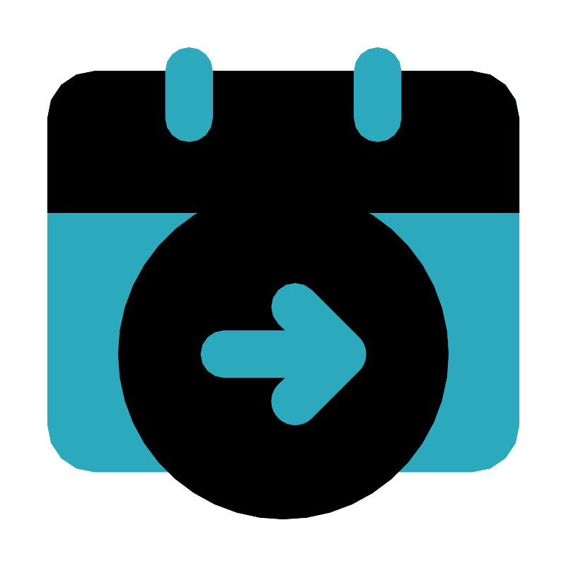 <svg fill="#000000" width="800px" height="800px" viewBox="0 0 24 24" id="date-alt-right" data-name="Flat Color" xmlns="http://www.w3.org/2000/svg" class="icon flat-color"><rect id="secondary" x="2" y="3" width="20" height="17" rx="2" style="fill: rgb(44, 169, 188);"></rect><circle id="primary" cx="12" cy="15" r="7" style="fill: rgb(0, 0, 0);"></circle><path id="primary-2" data-name="primary" d="M20,3H4A2,2,0,0,0,2,5V9H22V5A2,2,0,0,0,20,3Z" style="fill: rgb(0, 0, 0);"></path><path id="secondary-2" data-name="secondary" d="M16,6a1,1,0,0,1-1-1V3a1,1,0,0,1,2,0V5A1,1,0,0,1,16,6ZM9,5V3A1,1,0,0,0,7,3V5A1,1,0,0,0,9,5Zm4.21,12.71,2-2a1,1,0,0,0,0-1.42l-2-2a1,1,0,0,0-1.42,1.42l.3.29H9.5a1,1,0,0,0,0,2h2.59l-.3.29a1,1,0,0,0,0,1.42A1,1,0,0,0,13.21,17.71Z" style="fill: rgb(44, 169, 188);"></path></svg>