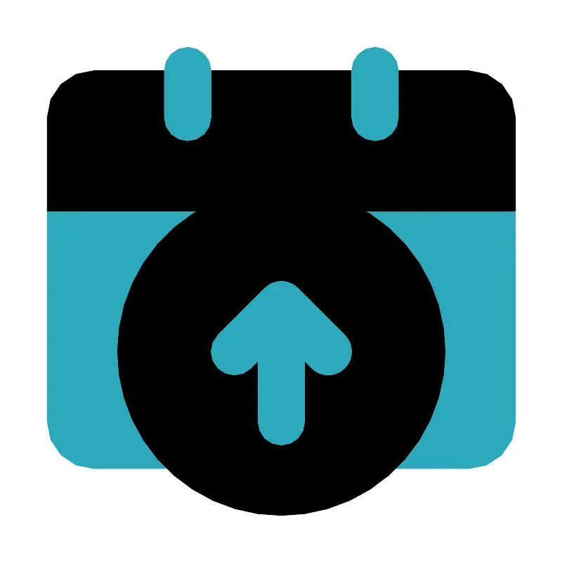 <svg fill="#000000" width="800px" height="800px" viewBox="0 0 24 24" id="date-alt-up" data-name="Flat Color" xmlns="http://www.w3.org/2000/svg" class="icon flat-color"><rect id="secondary" x="2" y="3" width="20" height="17" rx="2" style="fill: rgb(44, 169, 188);"></rect><circle id="primary" cx="12" cy="15" r="7" style="fill: rgb(0, 0, 0);"></circle><path id="primary-2" data-name="primary" d="M20,3H4A2,2,0,0,0,2,5V9H22V5A2,2,0,0,0,20,3Z" style="fill: rgb(0, 0, 0);"></path><path id="secondary-2" data-name="secondary" d="M16,6a1,1,0,0,1-1-1V3a1,1,0,0,1,2,0V5A1,1,0,0,1,16,6ZM9,5V3A1,1,0,0,0,7,3V5A1,1,0,0,0,9,5Zm5.71,9.29-2-2a1,1,0,0,0-1.42,0l-2,2a1,1,0,0,0,1.42,1.42l.29-.3V18a1,1,0,0,0,2,0V15.41l.29.3a1,1,0,0,0,1.42,0A1,1,0,0,0,14.71,14.29Z" style="fill: rgb(44, 169, 188);"></path></svg>
