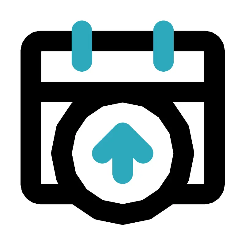 <svg fill="#000000" width="800px" height="800px" viewBox="0 0 24 24" id="date-alt-up" data-name="Line Color" xmlns="http://www.w3.org/2000/svg" class="icon line-color"><path id="primary" d="M7.54,19H4a1,1,0,0,1-1-1V5A1,1,0,0,1,4,4H20a1,1,0,0,1,1,1V18a1,1,0,0,1-1,1H16.46" style="fill: none; stroke: rgb(0, 0, 0); stroke-linecap: round; stroke-linejoin: round; stroke-width: 2;"></path><path id="primary-2" data-name="primary" d="M12,9a6,6,0,1,0,6,6A6,6,0,0,0,12,9ZM3,9H21" style="fill: none; stroke: rgb(0, 0, 0); stroke-linecap: round; stroke-linejoin: round; stroke-width: 2;"></path><path id="secondary" d="M16,3V6M8,3V6m4,7v4" style="fill: none; stroke: rgb(44, 169, 188); stroke-linecap: round; stroke-linejoin: round; stroke-width: 2;"></path><polyline id="secondary-2" data-name="secondary" points="10 15 12 13 14 15" style="fill: none; stroke: rgb(44, 169, 188); stroke-linecap: round; stroke-linejoin: round; stroke-width: 2;"></polyline></svg>