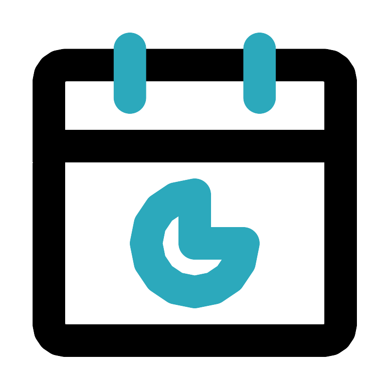<svg fill="#000000" width="800px" height="800px" viewBox="0 0 24 24" id="date-chart" data-name="Line Color" xmlns="http://www.w3.org/2000/svg" class="icon line-color"><path id="primary" d="M20,21H4a1,1,0,0,1-1-1V9H21V20A1,1,0,0,1,20,21ZM21,5a1,1,0,0,0-1-1H4A1,1,0,0,0,3,5V9H21Z" style="fill: none; stroke: rgb(0, 0, 0); stroke-linecap: round; stroke-linejoin: round; stroke-width: 2;"></path><path id="secondary" d="M16,3V6M8,3V6m4,9V12a3,3,0,1,0,3,3Z" style="fill: none; stroke: rgb(44, 169, 188); stroke-linecap: round; stroke-linejoin: round; stroke-width: 2;"></path></svg>