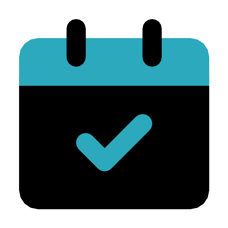 <svg fill="#000000" width="800px" height="800px" viewBox="0 0 24 24" id="date-check" data-name="Flat Color" xmlns="http://www.w3.org/2000/svg" class="icon flat-color"><path id="primary" d="M21,7H3A1,1,0,0,0,2,8V20a2,2,0,0,0,2,2H20a2,2,0,0,0,2-2V8A1,1,0,0,0,21,7Z" style="fill: rgb(0, 0, 0);"></path><path id="secondary" d="M22,6V9H2V6A2,2,0,0,1,4,4H20A2,2,0,0,1,22,6ZM11.71,17.71l4-4a1,1,0,0,0-1.42-1.42L11,15.59l-1.29-1.3a1,1,0,0,0-1.42,1.42l2,2a1,1,0,0,0,1.42,0Z" style="fill: rgb(44, 169, 188);"></path><path id="primary-2" data-name="primary" d="M16,7a1,1,0,0,1-1-1V3a1,1,0,0,1,2,0V6A1,1,0,0,1,16,7ZM9,6V3A1,1,0,0,0,7,3V6A1,1,0,0,0,9,6Z" style="fill: rgb(0, 0, 0);"></path></svg>