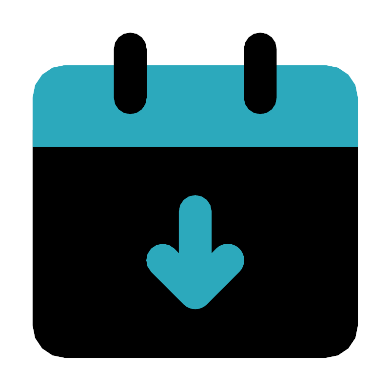 <svg fill="#000000" width="800px" height="800px" viewBox="0 0 24 24" id="date-down" data-name="Flat Color" xmlns="http://www.w3.org/2000/svg" class="icon flat-color"><path id="primary" d="M21,7H3A1,1,0,0,0,2,8V20a2,2,0,0,0,2,2H20a2,2,0,0,0,2-2V8A1,1,0,0,0,21,7Z" style="fill: rgb(0, 0, 0);"></path><path id="secondary" d="M22,6V9H2V6A2,2,0,0,1,4,4H20A2,2,0,0,1,22,6Zm-7.29,9.29a1,1,0,0,0-1.42,0l-.29.3V13a1,1,0,0,0-2,0v2.59l-.29-.3a1,1,0,0,0-1.42,1.42l2,2a1,1,0,0,0,1.42,0l2-2A1,1,0,0,0,14.71,15.29Z" style="fill: rgb(44, 169, 188);"></path><path id="primary-2" data-name="primary" d="M16,7a1,1,0,0,1-1-1V3a1,1,0,0,1,2,0V6A1,1,0,0,1,16,7ZM9,6V3A1,1,0,0,0,7,3V6A1,1,0,0,0,9,6Z" style="fill: rgb(0, 0, 0);"></path></svg>