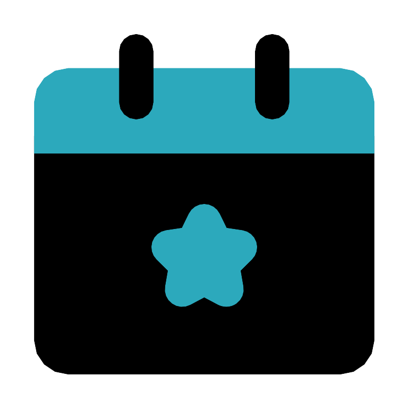 <svg fill="#000000" width="800px" height="800px" viewBox="0 0 24 24" id="date-star" data-name="Flat Color" xmlns="http://www.w3.org/2000/svg" class="icon flat-color"><path id="primary" d="M21,7H3A1,1,0,0,0,2,8V20a2,2,0,0,0,2,2H20a2,2,0,0,0,2-2V8A1,1,0,0,0,21,7Z" style="fill: rgb(0, 0, 0);"></path><path id="secondary" d="M22,6V9H2V6A2,2,0,0,1,4,4H20A2,2,0,0,1,22,6Zm-6.95,8.22a1,1,0,0,0-.8-.68l-.94-.14-.41-.84a1,1,0,0,0-1.8,0l-.41.84-.94.14a1,1,0,0,0-.55,1.7l.67.66-.16.93a1,1,0,0,0,.4,1,1,1,0,0,0,1.06.08l.83-.44.83.44a1.12,1.12,0,0,0,.47.11,1,1,0,0,0,.59-.19,1,1,0,0,0,.4-1l-.16-.93.67-.66A1,1,0,0,0,15.05,14.22Z" style="fill: rgb(44, 169, 188);"></path><path id="primary-2" data-name="primary" d="M16,7a1,1,0,0,1-1-1V3a1,1,0,0,1,2,0V6A1,1,0,0,1,16,7ZM9,6V3A1,1,0,0,0,7,3V6A1,1,0,0,0,9,6Z" style="fill: rgb(0, 0, 0);"></path></svg>
