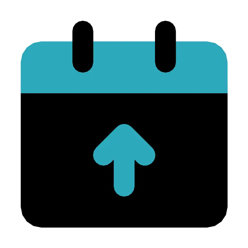 <svg fill="#000000" width="800px" height="800px" viewBox="0 0 24 24" id="date-up" data-name="Flat Color" xmlns="http://www.w3.org/2000/svg" class="icon flat-color"><path id="primary" d="M21,7H3A1,1,0,0,0,2,8V20a2,2,0,0,0,2,2H20a2,2,0,0,0,2-2V8A1,1,0,0,0,21,7Z" style="fill: rgb(0, 0, 0);"></path><path id="secondary" d="M22,6V9H2V6A2,2,0,0,1,4,4H20A2,2,0,0,1,22,6Zm-7.29,8.29-2-2a1,1,0,0,0-1.42,0l-2,2a1,1,0,0,0,1.42,1.42l.29-.3V18a1,1,0,0,0,2,0V15.41l.29.3a1,1,0,0,0,1.42,0A1,1,0,0,0,14.71,14.29Z" style="fill: rgb(44, 169, 188);"></path><path id="primary-2" data-name="primary" d="M16,7a1,1,0,0,1-1-1V3a1,1,0,0,1,2,0V6A1,1,0,0,1,16,7ZM9,6V3A1,1,0,0,0,7,3V6A1,1,0,0,0,9,6Z" style="fill: rgb(0, 0, 0);"></path></svg>