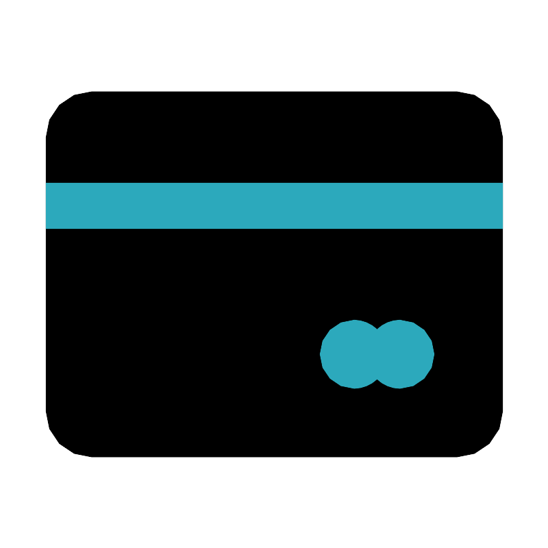 <svg fill="#000000" width="800px" height="800px" viewBox="0 0 24 24" id="debit-purchase" data-name="Flat Color" xmlns="http://www.w3.org/2000/svg" class="icon flat-color"><rect id="primary" x="2" y="4" width="20" height="16" rx="2" style="fill: rgb(0, 0, 0);"></rect><path id="secondary" d="M22,10H2V8H22Zm-4.5,4a1.47,1.47,0,0,0-1,.41,1.51,1.51,0,0,0-1-.41,1.5,1.5,0,0,0,0,3,1.51,1.51,0,0,0,1-.41,1.47,1.47,0,0,0,1,.41,1.5,1.5,0,0,0,0-3Z" style="fill: rgb(44, 169, 188);"></path></svg>