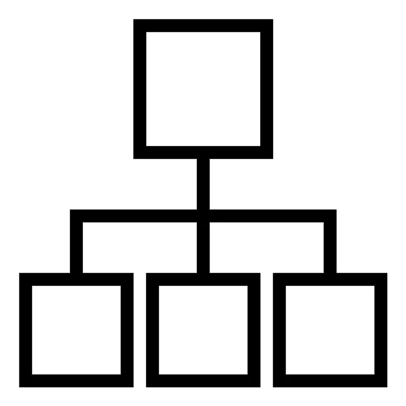 <path d="M53,43V33H33V25H43V3H21V25H31v8H11V43H3V61H21V43H13V35H31v8H23V61H41V43H33V35H51v8H43V61H61V43ZM23,23V5H41V23H23ZM19,45V59H5V45Zm20,0V59H25V45H39ZM59,59H45V45H59Z"/>