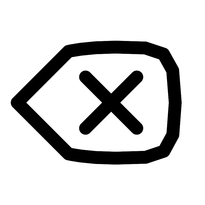 <path d="M16 9L10 15M10.0002 9L16.0002 15M8 18L2 12L8 6C8 6 10 5.5 13.5 5.5C19.1685 5.5 20.5 5.5 20.5 12C20.5 18.5 19.2925 18.5 13.5 18.5C10 18.5 8 18 8 18Z" stroke="#000000" stroke-width="1.5" stroke-linecap="round" stroke-linejoin="round"/>