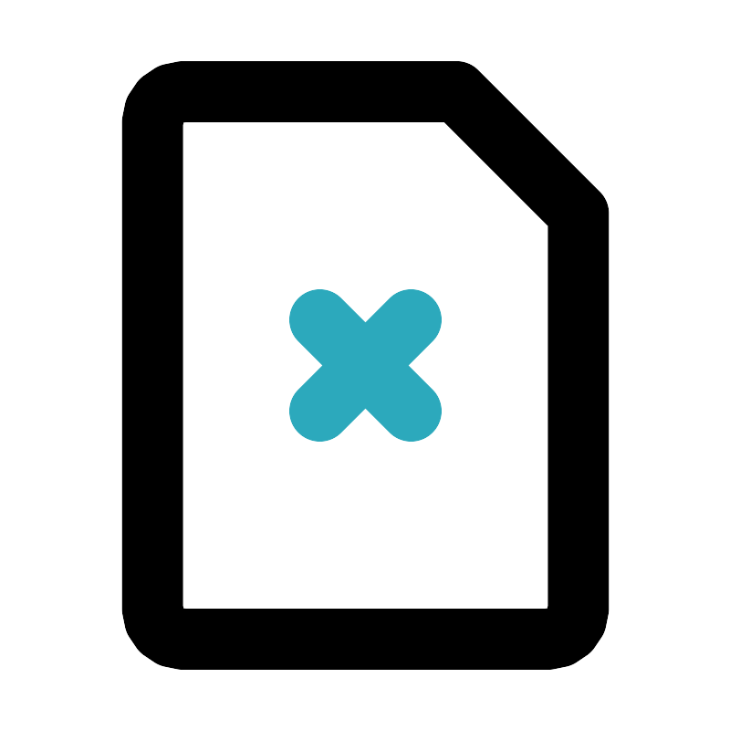 <svg fill="#000000" width="800px" height="800px" viewBox="0 0 24 24" id="delete-file" data-name="Line Color" xmlns="http://www.w3.org/2000/svg" class="icon line-color"><line id="secondary" x1="10.5" y1="10.5" x2="13.5" y2="13.5" style="fill: none; stroke: rgb(44, 169, 188); stroke-linecap: round; stroke-linejoin: round; stroke-width: 2;"></line><line id="secondary-2" data-name="secondary" x1="13.5" y1="10.5" x2="10.5" y2="13.5" style="fill: none; stroke: rgb(44, 169, 188); stroke-linecap: round; stroke-linejoin: round; stroke-width: 2;"></line><path id="primary" d="M6,21a1,1,0,0,1-1-1V4A1,1,0,0,1,6,3h9l4,4V20a1,1,0,0,1-1,1Z" style="fill: none; stroke: rgb(0, 0, 0); stroke-linecap: round; stroke-linejoin: round; stroke-width: 2;"></path></svg>
