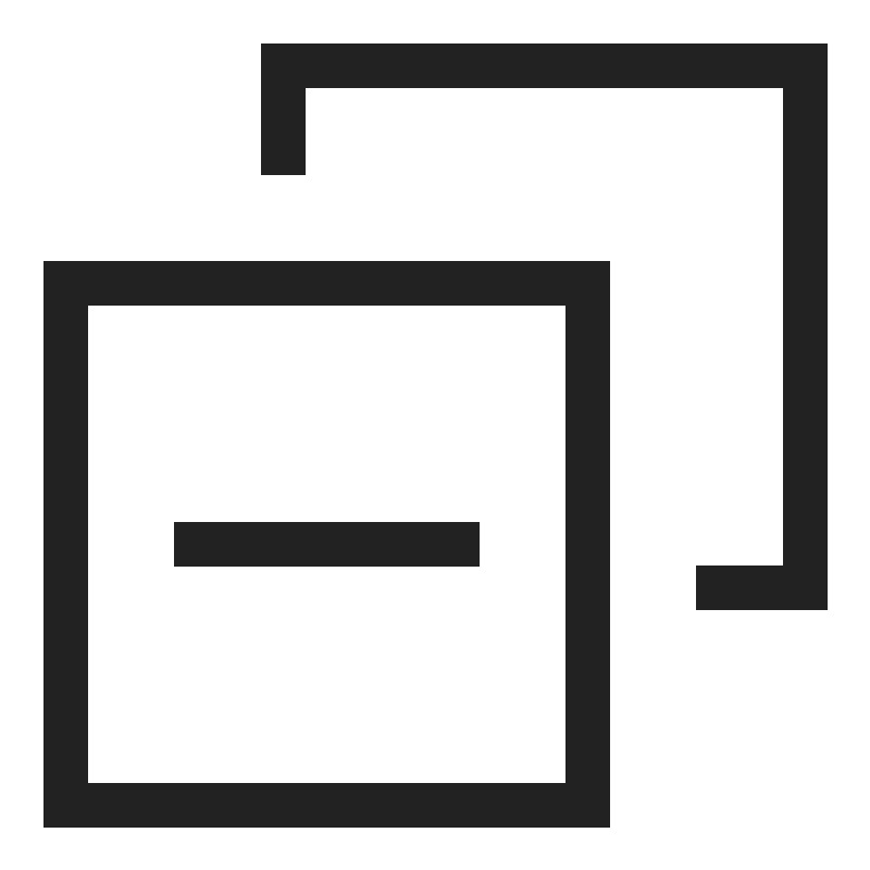 <path d="M 6 1 L 6 4 L 7 4 L 7 2 L 18 2 L 18 13 L 16 13 L 16 14 L 19 14 L 19 1 L 6 1 z M 1 6 L 1 19 L 14 19 L 14 6 L 1 6 z M 2 7 L 13 7 L 13 18 L 2 18 L 2 7 z M 4 12 L 4 13 L 11 13 L 11 12 L 4 12 z " style="fill:#222222; fill-opacity:1; stroke:none; stroke-width:0px;"/>