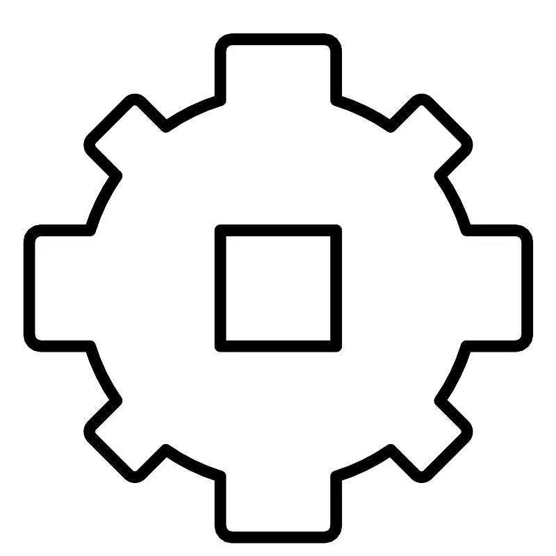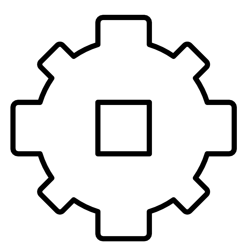 <svg width="800px" height="800px" viewBox="0 0 48 48" xmlns="http://www.w3.org/2000/svg"><defs><style>.a{fill:none;stroke:#000000;stroke-linecap:round;stroke-linejoin:round;}</style></defs><rect class="a" x="18.9928" y="19.8598" width="10" height="10"/><path class="a" d="M44.4928,19.86h-4.25a16.8821,16.8821,0,0,0-2.3-4.707L40.0747,13.02a.7566.7566,0,0,0,0-1.07L36.9021,8.7778a.7564.7564,0,0,0-1.07,0l-2.1364,2.1363a16.9772,16.9772,0,0,0-4.703-2.2936V4.36a1,1,0,0,0-1-1h-8a1,1,0,0,0-1,1V8.6205a16.9772,16.9772,0,0,0-4.703,2.2936L12.1533,8.7778a.7564.7564,0,0,0-1.07,0L7.9108,11.95a.7564.7564,0,0,0,0,1.07l2.1324,2.1324a16.8808,16.8808,0,0,0-2.3,4.707h-4.25a1,1,0,0,0-1,1v8a1,1,0,0,0,1,1h4.25a16.8808,16.8808,0,0,0,2.3,4.707L7.9108,36.6992a.7564.7564,0,0,0,0,1.07l3.1726,3.1726a.7564.7564,0,0,0,1.07,0L14.29,38.8055a16.9772,16.9772,0,0,0,4.703,2.2936V45.36a1,1,0,0,0,1,1h8a1,1,0,0,0,1-1V41.0991a16.9772,16.9772,0,0,0,4.703-2.2936l2.1364,2.1363a.7564.7564,0,0,0,1.07,0l3.1726-3.1726a.7566.7566,0,0,0,0-1.07l-2.1323-2.1324a16.8821,16.8821,0,0,0,2.3-4.707h4.25a1,1,0,0,0,1-1v-8A1,1,0,0,0,44.4928,19.86Z"/></svg>