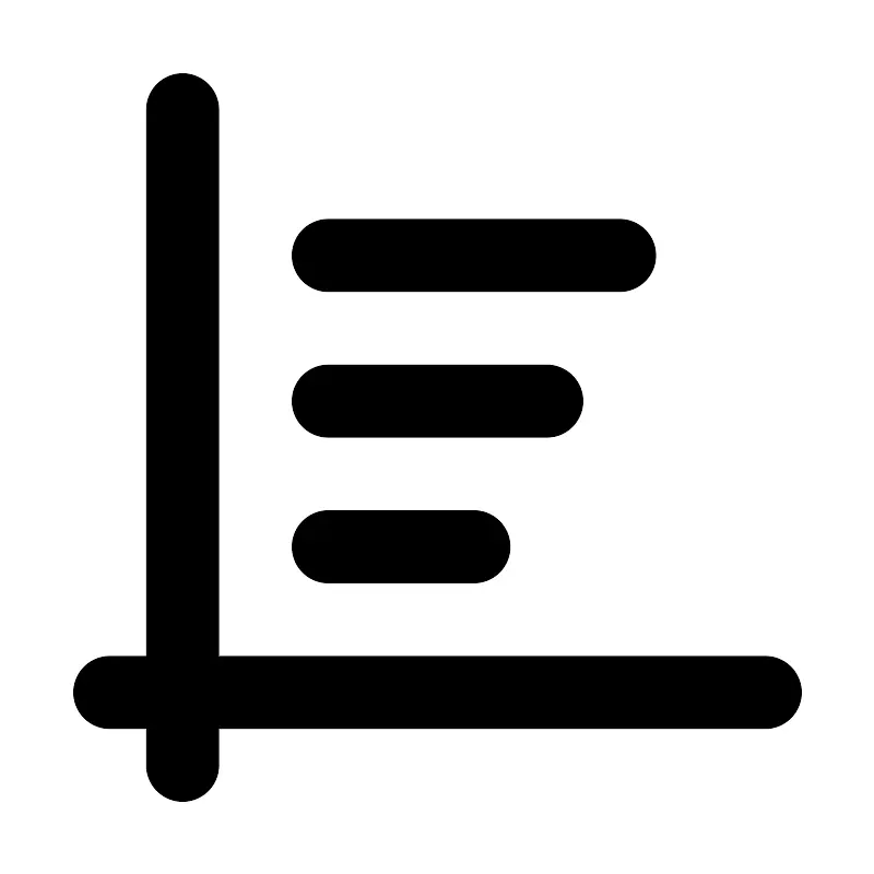 <svg fill="#000000" width="800px" height="800px" viewBox="0 0 24 24" id="diagram-bar-5" data-name="Flat Line" xmlns="http://www.w3.org/2000/svg" class="icon flat-line"><path id="primary" d="M13,15H9m6-4H9m8-4H9" style="fill: none; stroke: rgb(0, 0, 0); stroke-linecap: round; stroke-linejoin: round; stroke-width: 2;"></path><path id="primary-2" data-name="primary" d="M3,19H21M5,3V21" style="fill: none; stroke: rgb(0, 0, 0); stroke-linecap: round; stroke-linejoin: round; stroke-width: 2;"></path></svg>