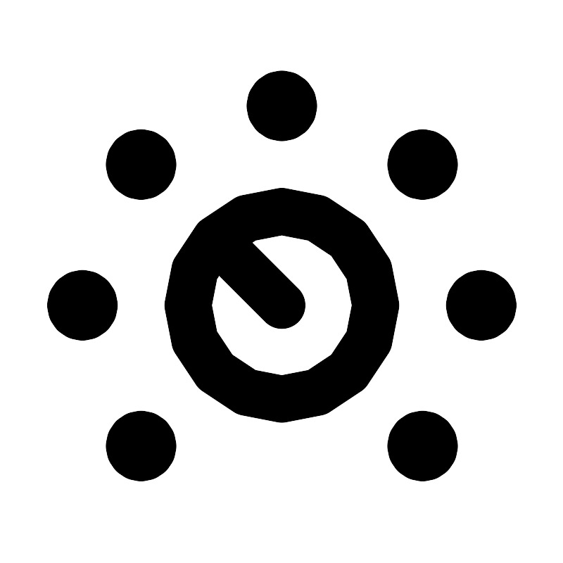 <path d="M20.5 13H20.49M12 4.5H11.99M3.5 13H3.49M18 7H17.99M6 7H5.99M18 19H17.99M6 19H5.99M9.17157 10.1716C7.60948 11.7337 7.60948 14.2663 9.17157 15.8284C10.7337 17.3905 13.2663 17.3905 14.8284 15.8284C16.3905 14.2663 16.3905 11.7337 14.8284 10.1716C13.2663 8.60948 10.7337 8.60948 9.17157 10.1716ZM9.17157 10.1716L12 13M20 13C20 13.2761 20.2239 13.5 20.5 13.5C20.7761 13.5 21 13.2761 21 13C21 12.7239 20.7761 12.5 20.5 12.5C20.2239 12.5 20 12.7239 20 13ZM11.5 4.5C11.5 4.77614 11.7239 5 12 5C12.2761 5 12.5 4.77614 12.5 4.5C12.5 4.22386 12.2761 4 12 4C11.7239 4 11.5 4.22386 11.5 4.5ZM3 13C3 12.7239 3.22386 12.5 3.5 12.5C3.77614 12.5 4 12.7239 4 13C4 13.2761 3.77614 13.5 3.5 13.5C3.22386 13.5 3 13.2761 3 13ZM17.5 7C17.5 7.27614 17.7239 7.5 18 7.5C18.2761 7.5 18.5 7.27614 18.5 7C18.5 6.72386 18.2761 6.5 18 6.5C17.7239 6.5 17.5 6.72386 17.5 7ZM5.5 7C5.5 6.72386 5.72386 6.5 6 6.5C6.27614 6.5 6.5 6.72386 6.5 7C6.5 7.27614 6.27614 7.5 6 7.5C5.72386 7.5 5.5 7.27614 5.5 7ZM17.5 19C17.5 19.2761 17.7239 19.5 18 19.5C18.2761 19.5 18.5 19.2761 18.5 19C18.5 18.7239 18.2761 18.5 18 18.5C17.7239 18.5 17.5 18.7239 17.5 19ZM5.5 19C5.5 18.7239 5.72386 18.5 6 18.5C6.27614 18.5 6.5 18.7239 6.5 19C6.5 19.2761 6.27614 19.5 6 19.5C5.72386 19.5 5.5 19.2761 5.5 19Z" stroke="#000000" stroke-width="2" stroke-linecap="round"/>