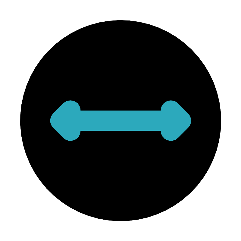 <svg fill="#000000" width="800px" height="800px" viewBox="0 0 24 24" id="diameter" data-name="Flat Color" xmlns="http://www.w3.org/2000/svg" class="icon flat-color"><circle id="primary" cx="12" cy="12" r="10" style="fill: rgb(0, 0, 0);"></circle><path id="secondary" d="M18.71,11.29l-1-1a1,1,0,0,0-1.42,0A1,1,0,0,0,16,11H8a1,1,0,0,0-.29-.71,1,1,0,0,0-1.42,0l-1,1a1,1,0,0,0,0,1.42l1,1A1,1,0,0,0,8,13h8a1,1,0,0,0,1.71.71l1-1A1,1,0,0,0,18.71,11.29Z" style="fill: rgb(44, 169, 188);"></path></svg>