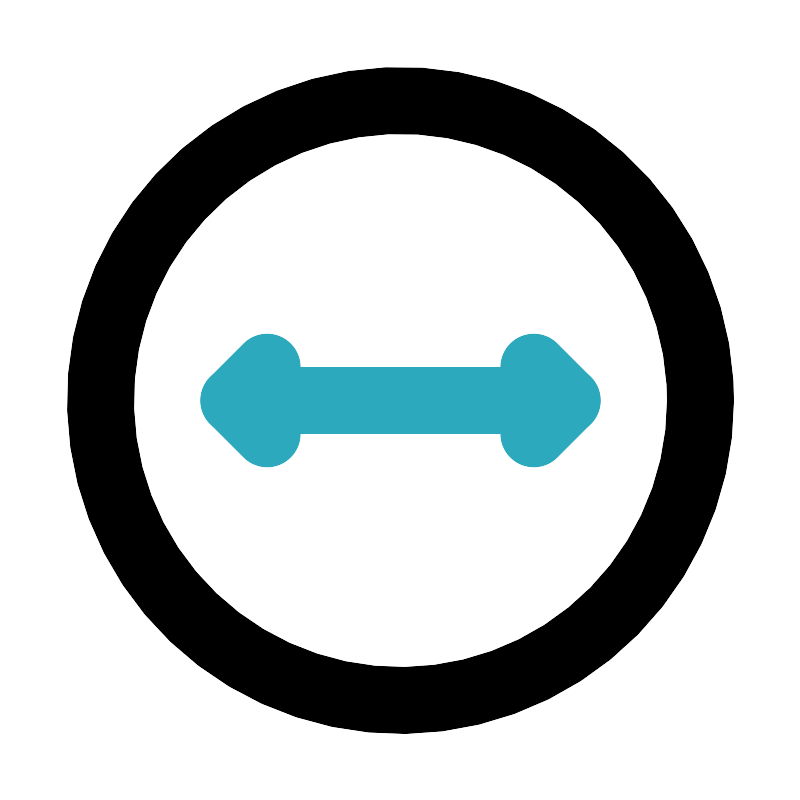 <svg fill="#000000" width="800px" height="800px" viewBox="0 0 24 24" id="diameter" data-name="Line Color" xmlns="http://www.w3.org/2000/svg" class="icon line-color"><polyline id="secondary" points="16 13 17 12 16 11" style="fill: none; stroke: rgb(44, 169, 188); stroke-linecap: round; stroke-linejoin: round; stroke-width: 2;"></polyline><polyline id="secondary-2" data-name="secondary" points="8 11 7 12 8 13" style="fill: none; stroke: rgb(44, 169, 188); stroke-linecap: round; stroke-linejoin: round; stroke-width: 2;"></polyline><line id="secondary-3" data-name="secondary" x1="7" y1="12" x2="17" y2="12" style="fill: none; stroke: rgb(44, 169, 188); stroke-linecap: round; stroke-linejoin: round; stroke-width: 2;"></line><circle id="primary" cx="12" cy="12" r="9" style="fill: none; stroke: rgb(0, 0, 0); stroke-linecap: round; stroke-linejoin: round; stroke-width: 2;"></circle></svg>