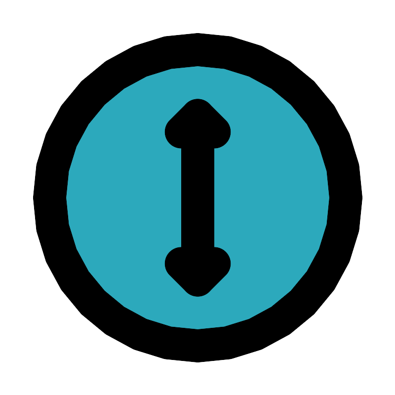 <svg fill="#000000" width="800px" height="800px" viewBox="0 0 24 24" id="diameter-2" data-name="Flat Line" xmlns="http://www.w3.org/2000/svg" class="icon flat-line"><circle id="secondary" cx="12" cy="12" r="9" style="fill: rgb(44, 169, 188); stroke-width: 2;"></circle><polyline id="primary" points="11 16 12 17 13 16" style="fill: none; stroke: rgb(0, 0, 0); stroke-linecap: round; stroke-linejoin: round; stroke-width: 2;"></polyline><polyline id="primary-2" data-name="primary" points="13 8 12 7 11 8" style="fill: none; stroke: rgb(0, 0, 0); stroke-linecap: round; stroke-linejoin: round; stroke-width: 2;"></polyline><path id="primary-3" data-name="primary" d="M12,7V17m0,4a9,9,0,1,0-9-9A9,9,0,0,0,12,21Z" style="fill: none; stroke: rgb(0, 0, 0); stroke-linecap: round; stroke-linejoin: round; stroke-width: 2;"></path></svg>