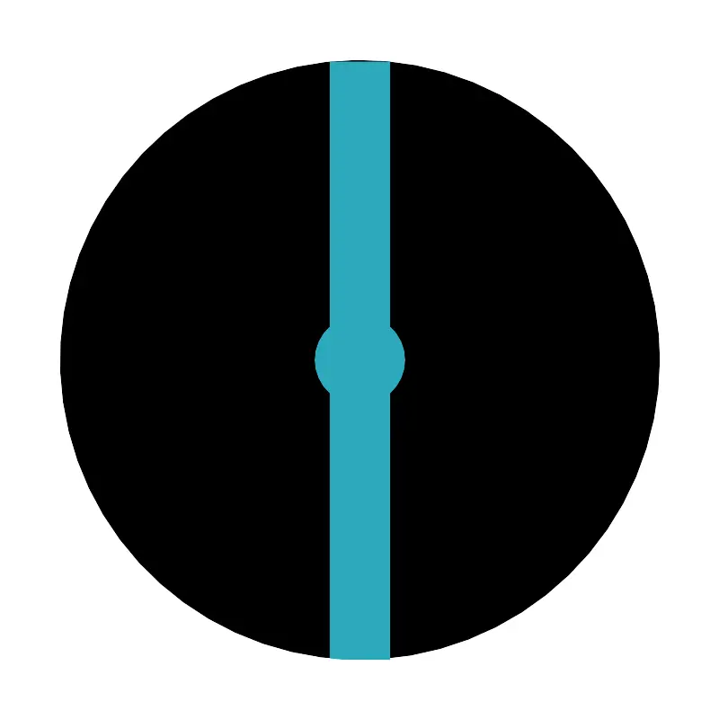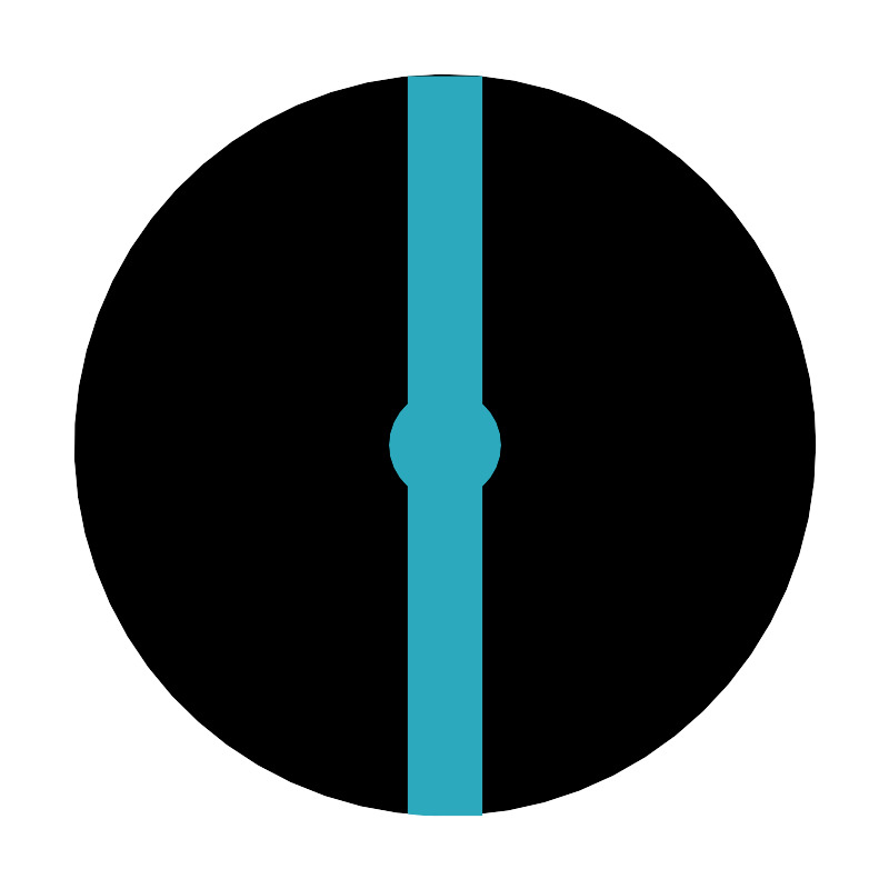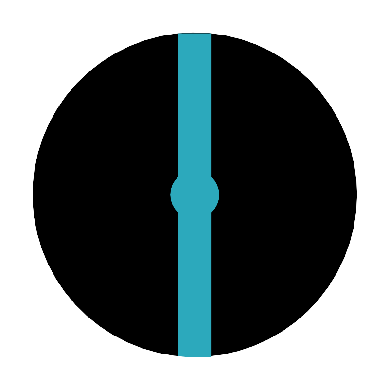 <svg fill="#000000" width="800px" height="800px" viewBox="0 0 24 24" id="diameter-circle-2" data-name="Flat Color" xmlns="http://www.w3.org/2000/svg" class="icon flat-color"><circle id="primary" cx="12" cy="12" r="10" style="fill: rgb(0, 0, 0);"></circle><path id="secondary" d="M12,22c-.34,0-.67,0-1-.05V13.11a1.48,1.48,0,0,1,0-2.22V2.05c.33,0,.66,0,1,0s.67,0,1,0v8.84a1.48,1.48,0,0,1,0,2.22V22C12.67,22,12.34,22,12,22Z" style="fill: rgb(44, 169, 188);"></path></svg>