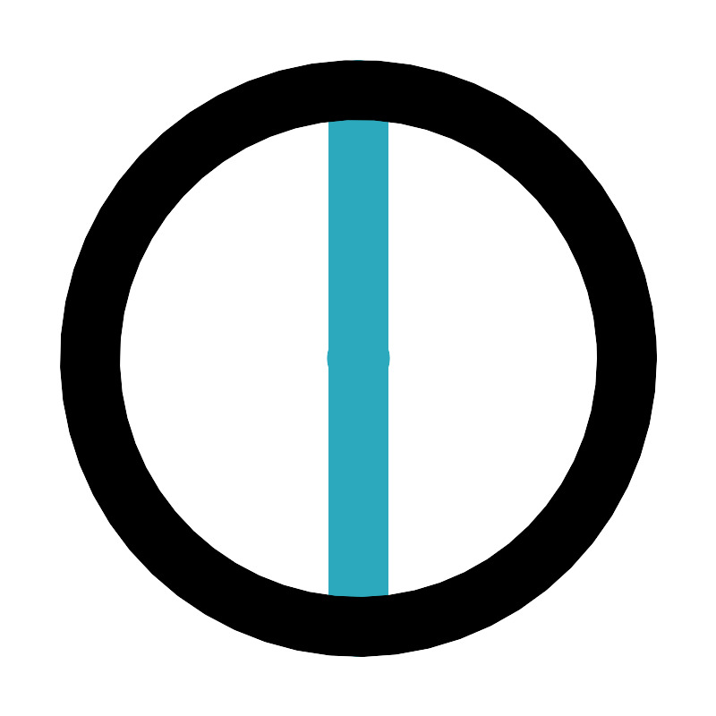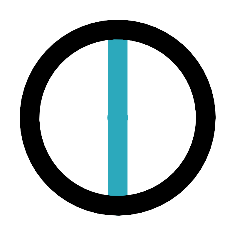 <svg fill="#000000" width="800px" height="800px" viewBox="0 0 24 24" id="diameter-circle-2" data-name="Line Color" xmlns="http://www.w3.org/2000/svg" class="icon line-color"><line id="secondary-upstroke" x1="12.05" y1="12" x2="11.95" y2="12" style="fill: none; stroke: rgb(44, 169, 188); stroke-linecap: round; stroke-linejoin: round; stroke-width: 2;"></line><line id="secondary" x1="12" y1="21" x2="12" y2="3" style="fill: none; stroke: rgb(44, 169, 188); stroke-linecap: round; stroke-linejoin: round; stroke-width: 2;"></line><circle id="primary" cx="12" cy="12" r="9" style="fill: none; stroke: rgb(0, 0, 0); stroke-linecap: round; stroke-linejoin: round; stroke-width: 2;"></circle></svg>