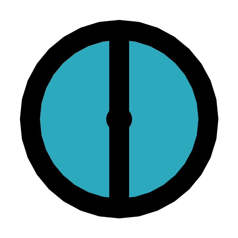 <svg fill="#000000" width="800px" height="800px" viewBox="0 0 24 24" id="diameter-circle-2" data-name="Flat Line" xmlns="http://www.w3.org/2000/svg" class="icon flat-line"><circle id="secondary" cx="12" cy="12" r="9" style="fill: rgb(44, 169, 188); stroke-width: 2;"></circle><line id="primary-upstroke" x1="12.05" y1="12" x2="11.95" y2="12" style="fill: none; stroke: rgb(0, 0, 0); stroke-linecap: round; stroke-linejoin: round; stroke-width: 2.5;"></line><path id="primary" d="M12,21V3m9,9a9,9,0,1,0-9,9A9,9,0,0,0,21,12Z" style="fill: none; stroke: rgb(0, 0, 0); stroke-linecap: round; stroke-linejoin: round; stroke-width: 2;"></path></svg>