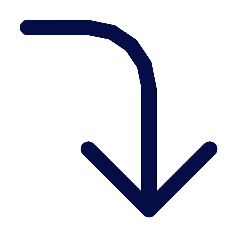 <path fill-rule="evenodd" clip-rule="evenodd" d="M15.6208 21.7747C15.3204 22.0751 14.8334 22.0751 14.533 21.7747L8.37915 15.6209C8.07874 15.3204 8.07874 14.8334 8.37915 14.533C8.67955 14.2326 9.1666 14.2326 9.467 14.533L14.3077 19.3737L14.3077 8.92308C14.3077 5.94924 11.8969 3.53846 8.92308 3.53846L2.76923 3.53846C2.3444 3.53846 2 3.19406 2 2.76923C2 2.3444 2.3444 2 2.76923 2L8.92308 2C12.7466 2 15.8462 5.09957 15.8462 8.92308L15.8462 19.3737L20.6868 14.533C20.9872 14.2326 21.4743 14.2326 21.7747 14.533C22.0751 14.8334 22.0751 15.3204 21.7747 15.6209L15.6208 21.7747Z" fill="#030D45"/>
