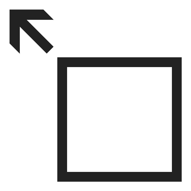 <path d="M 1 1 L 1 4.5351562 L 2.0605469 5.5957031 L 2.0605469 2.7675781 L 4.8789062 5.5859375 L 5.5859375 4.8789062 L 2.7675781 2.0605469 L 5.5957031 2.0605469 L 4.5351562 1 L 1 1 z M 6 6 L 6 19 L 19 19 L 19 6 L 6 6 z M 7 7 L 18 7 L 18 18 L 7 18 L 7 7 z " style="fill:#222222; fill-opacity:1; stroke:none; stroke-width:0px;"/>