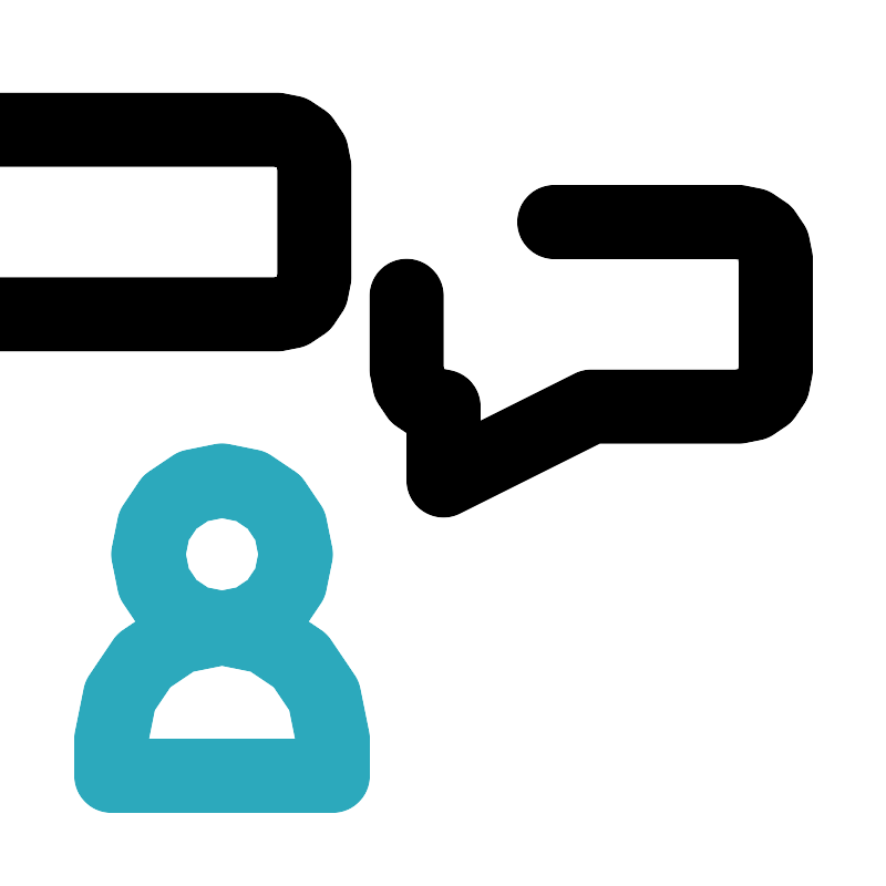 <svg fill="#000000" width="800px" height="800px" viewBox="0 0 24 24" id="discussion" data-name="Line Color" xmlns="http://www.w3.org/2000/svg" class="icon line-color"><path id="secondary" d="M6,13a2,2,0,1,0,2,2A2,2,0,0,0,6,13Zm3,7a3,3,0,0,0-3-3H6a3,3,0,0,0-3,3v1H9Z" style="fill: none; stroke: rgb(44, 169, 188); stroke-linecap: round; stroke-linejoin: round; stroke-width: 2;"></path><path id="primary" d="M15,6h5a1,1,0,0,1,1,1v3a1,1,0,0,1-1,1H16l-4,2V11a1,1,0,0,1-1-1V8" style="fill: none; stroke: rgb(0, 0, 0); stroke-linecap: round; stroke-linejoin: round; stroke-width: 2;"></path><rect id="primary-2" data-name="primary" x="6.5" y="-0.5" width="5" height="12" rx="1" transform="translate(14.5 -3.5) rotate(90)" style="fill: none; stroke: rgb(0, 0, 0); stroke-linecap: round; stroke-linejoin: round; stroke-width: 2;"></rect></svg>