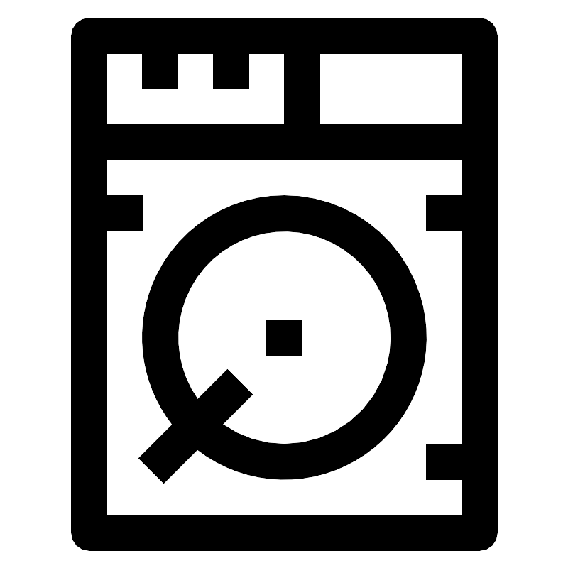 <svg fill="#000000" width="800px" height="800px" viewBox="0 0 64 64" data-name="Material Expand" id="Material_Expand" xmlns="http://www.w3.org/2000/svg"><path d="M54,2H10A2,2,0,0,0,8,4V60a2,2,0,0,0,2,2H54a2,2,0,0,0,2-2V4A2,2,0,0,0,54,2ZM52,14H36V6H52ZM16,6v4h4V6h4v4h4V6h4v8H12V6ZM12,58V26h4V22H12V18H52v4H48v4h4V50H48v4h4v4Z"/><path d="M32,22A15.973,15.973,0,0,0,19.377,47.8l-3.791,3.791,2.828,2.828,3.791-3.791A15.991,15.991,0,1,0,32,22Zm0,28a11.922,11.922,0,0,1-6.942-2.23l3.356-3.356-2.828-2.828L22.23,44.942A11.988,11.988,0,1,1,32,50Z"/><rect height="4" width="4" x="30" y="36"/></svg>