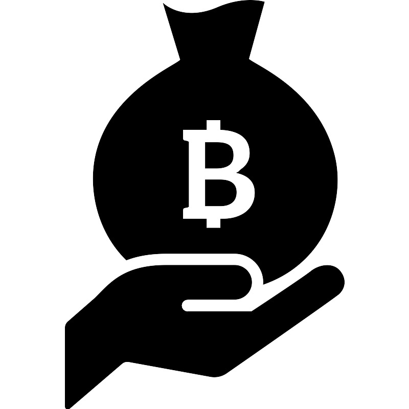 Мешок долларов с биткоином на руке
