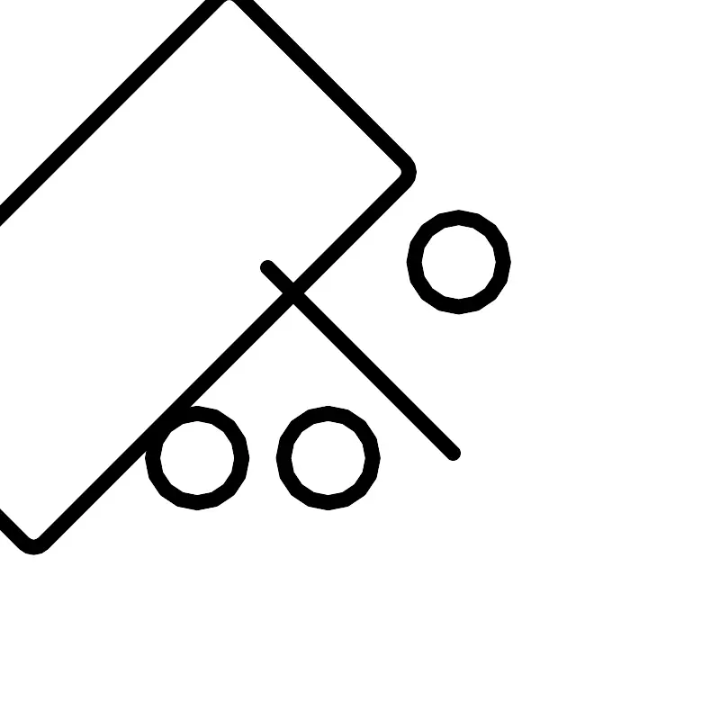 <svg width="800px" height="800px" viewBox="0 0 48 48" xmlns="http://www.w3.org/2000/svg"><defs><style>.a{fill:none;stroke:#000000;stroke-linecap:round;stroke-linejoin:round;}</style></defs><rect class="a" x="15.27" y="6.04" width="17.47" height="35.91" rx="0.9" transform="translate(24 -9.94) rotate(45)"/><line class="a" x1="17.82" y1="17.82" x2="30.18" y2="30.18"/><circle class="a" cx="30.55" cy="17.45" r="2.98"/><circle class="a" cx="21.85" cy="30.51" r="2.98"/><circle class="a" cx="13.12" cy="30.51" r="2.98"/></svg>