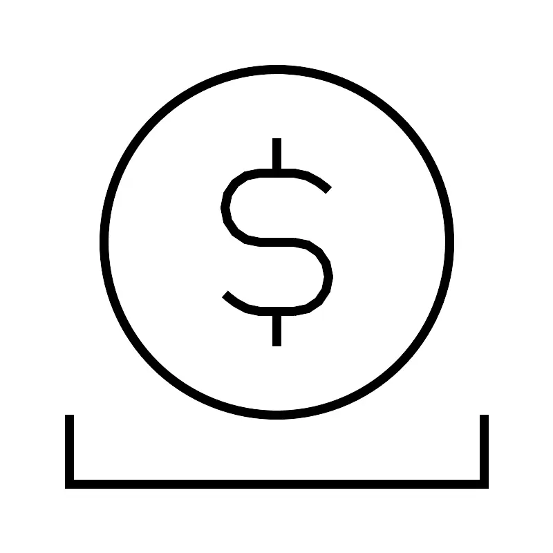 <svg width="800px" height="800px" viewBox="0 0 64 64" xmlns="http://www.w3.org/2000/svg" fill="none" stroke="#000000"><circle cx="32" cy="28" r="20"/><polyline points="8 48 8 56 56 56 56 48"/><path d="M30 28a4 4 0 0 1 0-8"/><path d="M34 28a4 4 0 0 1 0 8"/><line x1="32" y1="16" x2="32" y2="20"/><line x1="32" y1="36" x2="32" y2="40"/><line x1="30" y1="28" x2="34" y2="28"/><path d="M38 22s-2-2-4-2h-4"/><path d="M26 34s2 2 4 2h4"/></svg>