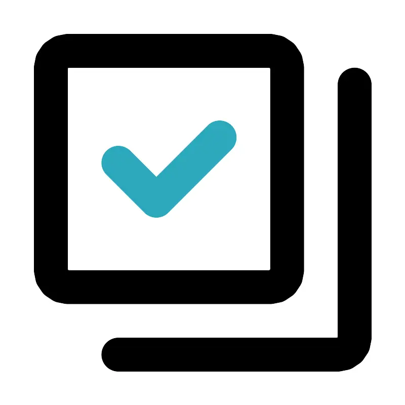 <svg fill="#000000" width="800px" height="800px" viewBox="0 0 24 24" id="done-collection" data-name="Line Color" xmlns="http://www.w3.org/2000/svg" class="icon line-color"><polyline id="secondary" points="7 9.63 9.25 11.88 13 8.13" style="fill: none; stroke: rgb(44, 169, 188); stroke-linecap: round; stroke-linejoin: round; stroke-width: 2;"></polyline><rect id="primary" x="3" y="3" width="14" height="14" rx="1" style="fill: none; stroke: rgb(0, 0, 0); stroke-linecap: round; stroke-linejoin: round; stroke-width: 2;"></rect><path id="primary-2" data-name="primary" d="M7,21H20a1,1,0,0,0,1-1V5" style="fill: none; stroke: rgb(0, 0, 0); stroke-linecap: round; stroke-linejoin: round; stroke-width: 2;"></path></svg>