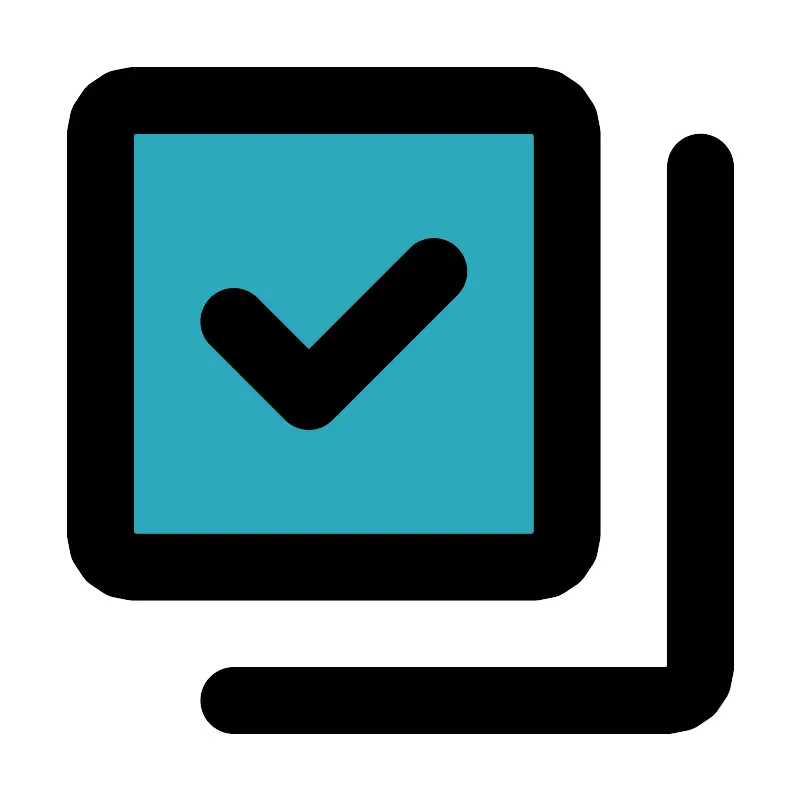 <svg fill="#000000" width="800px" height="800px" viewBox="0 0 24 24" id="done-collection" data-name="Flat Line" xmlns="http://www.w3.org/2000/svg" class="icon flat-line"><rect id="secondary" x="3" y="3" width="14" height="14" rx="1" style="fill: rgb(44, 169, 188); stroke-width: 2;"></rect><polyline id="primary" points="7 9.63 9.25 11.88 13 8.13" style="fill: none; stroke: rgb(0, 0, 0); stroke-linecap: round; stroke-linejoin: round; stroke-width: 2;"></polyline><rect id="primary-2" data-name="primary" x="3" y="3" width="14" height="14" rx="1" style="fill: none; stroke: rgb(0, 0, 0); stroke-linecap: round; stroke-linejoin: round; stroke-width: 2;"></rect><path id="primary-3" data-name="primary" d="M7,21H20a1,1,0,0,0,1-1V5" style="fill: none; stroke: rgb(0, 0, 0); stroke-linecap: round; stroke-linejoin: round; stroke-width: 2;"></path></svg>