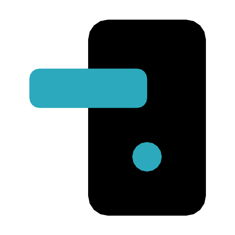 <svg fill="#000000" width="800px" height="800px" viewBox="0 0 24 24" id="door-handle-4" data-name="Flat Color" xmlns="http://www.w3.org/2000/svg" class="icon flat-color"><rect id="primary" x="9" y="2" width="12" height="20" rx="2" style="fill: rgb(0, 0, 0);"></rect><path id="secondary" d="M3,10V8A1,1,0,0,1,4,7H14a1,1,0,0,1,1,1v2a1,1,0,0,1-1,1H4A1,1,0,0,1,3,10Zm12,4.5A1.5,1.5,0,1,0,16.5,16,1.5,1.5,0,0,0,15,14.5Z" style="fill: rgb(44, 169, 188);"></path></svg>