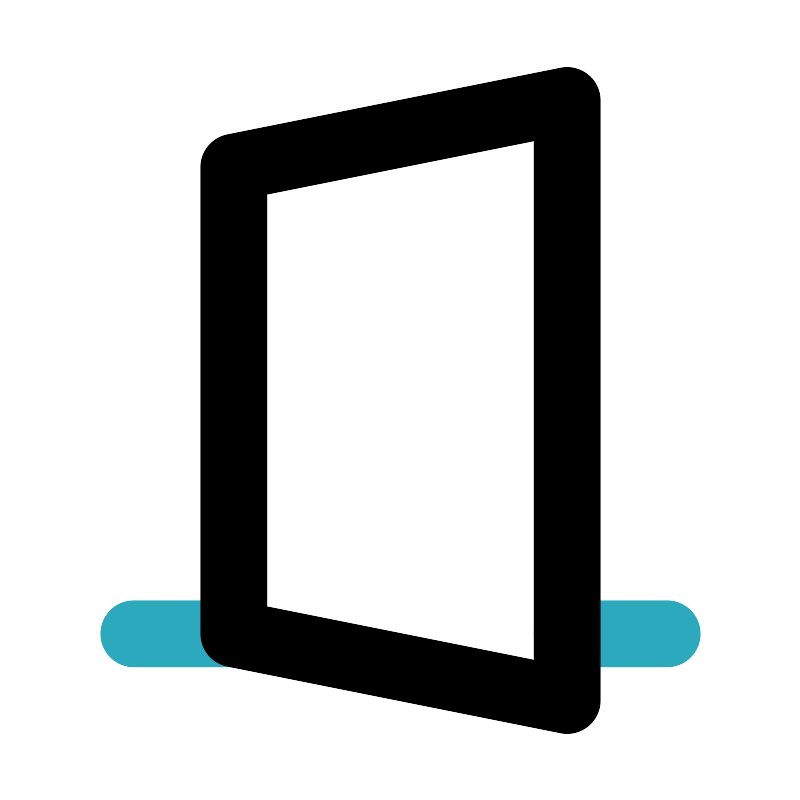 <svg fill="#000000" width="800px" height="800px" viewBox="0 0 24 24" id="door-house" data-name="Line Color" xmlns="http://www.w3.org/2000/svg" class="icon line-color"><path id="secondary" d="M20,19H17M7,19H4" style="fill: none; stroke: rgb(44, 169, 188); stroke-linecap: round; stroke-linejoin: round; stroke-width: 2;"></path><polygon id="primary" points="17 3 7 5 7 19 17 21 17 3" style="fill: none; stroke: rgb(0, 0, 0); stroke-linecap: round; stroke-linejoin: round; stroke-width: 2;"></polygon></svg>