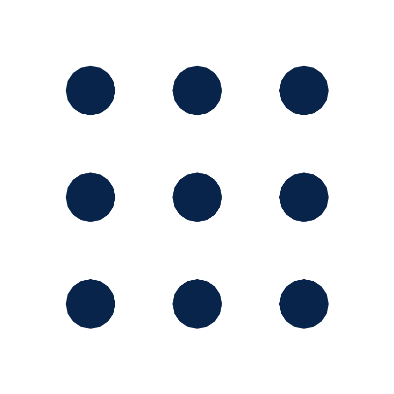 <path d="M5.5,17 C6.32843,17 7,17.6716 7,18.5 C7,19.3284 6.32843,20 5.5,20 C4.67157,20 4,19.3284 4,18.5 C4,17.6716 4.67157,17 5.5,17 Z M12,17 C12.8284,17 13.5,17.6716 13.5,18.5 C13.5,19.3284 12.8284,20 12,20 C11.1716,20 10.5,19.3284 10.5,18.5 C10.5,17.6716 11.1716,17 12,17 Z M18.5,17 C19.3284,17 20,17.6716 20,18.5 C20,19.3284 19.3284,20 18.5,20 C17.6716,20 17,19.3284 17,18.5 C17,17.6716 17.6716,17 18.5,17 Z M5.5,10.5 C6.32843,10.5 7,11.1716 7,12 C7,12.8284 6.32843,13.5 5.5,13.5 C4.67157,13.5 4,12.8284 4,12 C4,11.1716 4.67157,10.5 5.5,10.5 Z M12,10.5 C12.8284,10.5 13.5,11.1716 13.5,12 C13.5,12.8284 12.8284,13.5 12,13.5 C11.1716,13.5 10.5,12.8284 10.5,12 C10.5,11.1716 11.1716,10.5 12,10.5 Z M18.5,10.5 C19.3284,10.5 20,11.1716 20,12 C20,12.8284 19.3284,13.5 18.5,13.5 C17.6716,13.5 17,12.8284 17,12 C17,11.1716 17.6716,10.5 18.5,10.5 Z M5.5,4 C6.32843,4 7,4.67157 7,5.5 C7,6.32843 6.32843,7 5.5,7 C4.67157,7 4,6.32843 4,5.5 C4,4.67157 4.67157,4 5.5,4 Z M12,4 C12.8284,4 13.5,4.67157 13.5,5.5 C13.5,6.32843 12.8284,7 12,7 C11.1716,7 10.5,6.32843 10.5,5.5 C10.5,4.67157 11.1716,4 12,4 Z M18.5,4 C19.3284,4 20,4.67157 20,5.5 C20,6.32843 19.3284,7 18.5,7 C17.6716,7 17,6.32843 17,5.5 C17,4.67157 17.6716,4 18.5,4 Z" id="形状" fill="#09244B">