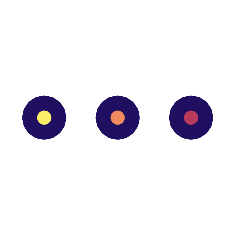 <svg width="800px" height="800px" viewBox="0 0 32 32" enable-background="new 0 0 32 32" id="Filled_Line" version="1.1" xml:space="preserve" xmlns="http://www.w3.org/2000/svg" xmlns:xlink="http://www.w3.org/1999/xlink"><circle cx="16" cy="16" fill="#F08A5D" id="XMLID_911_" r="2"/><circle cx="6" cy="16" fill="#B83B5E" id="XMLID_910_" r="2"/><circle cx="26" cy="16" fill="#B83B5E" id="XMLID_864_" r="2"/><circle cx="16" cy="16" fill="none" id="XMLID_846_" r="2" stroke="#200F60" stroke-linecap="round" stroke-linejoin="round" stroke-miterlimit="10" stroke-width="2"/><circle cx="6" cy="16" fill="#F9ED69" id="XMLID_845_" r="2" stroke="#200F60" stroke-linecap="round" stroke-linejoin="round" stroke-miterlimit="10" stroke-width="2"/><circle cx="26" cy="16" fill="none" id="XMLID_844_" r="2" stroke="#200F60" stroke-linecap="round" stroke-linejoin="round" stroke-miterlimit="10" stroke-width="2"/></svg>