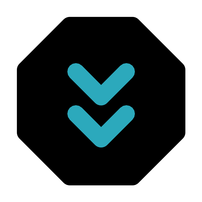 <svg fill="#000000" width="800px" height="800px" viewBox="0 0 24 24" id="double-down-sign-octagon" data-name="Flat Color" xmlns="http://www.w3.org/2000/svg" class="icon flat-color"><path id="primary" d="M21.71,7.57,16.43,2.29a1,1,0,0,0-.7-.29H8.27a1.05,1.05,0,0,0-.71.29L2.29,7.57a1,1,0,0,0-.29.7v7.46a1,1,0,0,0,.29.7l5.27,5.28a1.05,1.05,0,0,0,.71.29h7.46a1,1,0,0,0,.7-.29l5.28-5.28a1,1,0,0,0,.29-.7V8.27A1,1,0,0,0,21.71,7.57Z" style="fill: rgb(0, 0, 0);"></path><path id="secondary" d="M12,17.5a1,1,0,0,1-.71-.29l-3-3a1,1,0,0,1,1.42-1.42L12,15.09l2.29-2.3a1,1,0,0,1,1.42,1.42l-3,3A1,1,0,0,1,12,17.5Zm.71-5.29,3-3a1,1,0,1,0-1.42-1.42L12,10.09,9.71,7.79A1,1,0,1,0,8.29,9.21l3,3a1,1,0,0,0,1.42,0Z" style="fill: rgb(44, 169, 188);"></path></svg>