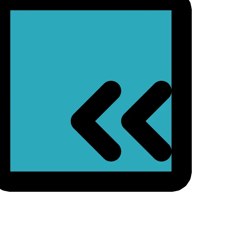 <svg fill="#000000" width="800px" height="800px" viewBox="0 0 24 24" id="double-left-sign-square" data-name="Flat Line" xmlns="http://www.w3.org/2000/svg" class="icon flat-line"><rect id="secondary" x="3" y="3" width="18" height="18" rx="1" transform="translate(24 24) rotate(180)" style="fill: rgb(44, 169, 188); stroke-width: 2;"></rect><polyline id="primary" points="11 15 8 12 11 9" style="fill: none; stroke: rgb(0, 0, 0); stroke-linecap: round; stroke-linejoin: round; stroke-width: 2;"></polyline><polyline id="primary-2" data-name="primary" points="16 15 13 12 16 9" style="fill: none; stroke: rgb(0, 0, 0); stroke-linecap: round; stroke-linejoin: round; stroke-width: 2;"></polyline><rect id="primary-3" data-name="primary" x="3" y="3" width="18" height="18" rx="1" transform="translate(24 24) rotate(180)" style="fill: none; stroke: rgb(0, 0, 0); stroke-linecap: round; stroke-linejoin: round; stroke-width: 2;"></rect></svg>