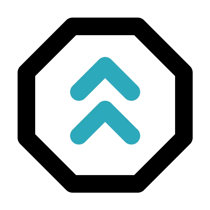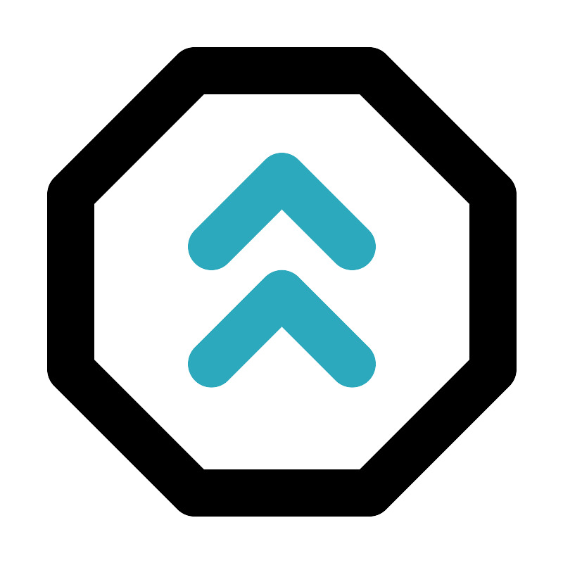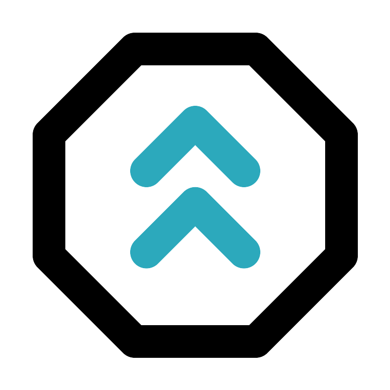 <svg fill="#000000" width="800px" height="800px" viewBox="0 0 24 24" id="double-up-sign-octagon" data-name="Line Color" xmlns="http://www.w3.org/2000/svg" class="icon line-color"><polyline id="secondary" points="15 10.5 12 7.5 9 10.5" style="fill: none; stroke: rgb(44, 169, 188); stroke-linecap: round; stroke-linejoin: round; stroke-width: 2;"></polyline><polyline id="secondary-2" data-name="secondary" points="15 15.5 12 12.5 9 15.5" style="fill: none; stroke: rgb(44, 169, 188); stroke-linecap: round; stroke-linejoin: round; stroke-width: 2;"></polyline><polygon id="primary" points="8.27 3 15.73 3 21 8.27 21 15.73 15.73 21 8.27 21 3 15.73 3 8.27 8.27 3" style="fill: none; stroke: rgb(0, 0, 0); stroke-linecap: round; stroke-linejoin: round; stroke-width: 2;"></polygon></svg>