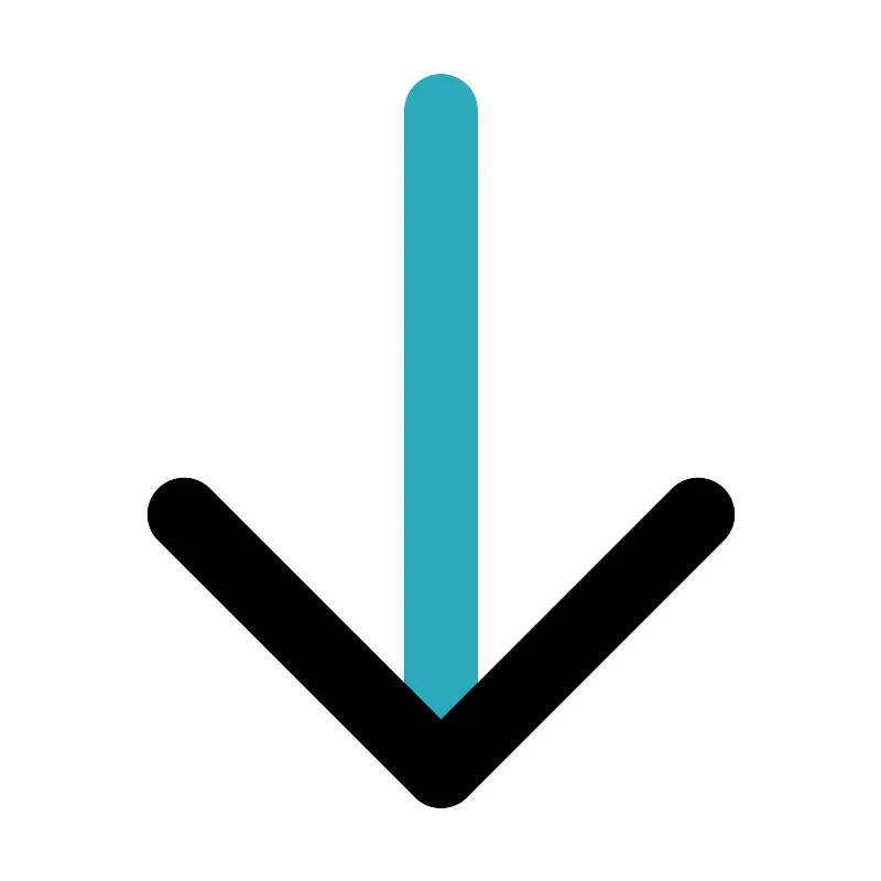 <svg fill="#000000" width="800px" height="800px" viewBox="0 0 24 24" id="down" data-name="Line Color" xmlns="http://www.w3.org/2000/svg" class="icon line-color"><line id="secondary" x1="12" y1="21" x2="12" y2="3" style="fill: none; stroke: rgb(44, 169, 188); stroke-linecap: round; stroke-linejoin: round; stroke-width: 2;"></line><polyline id="primary" points="19 14 12 21 5 14" style="fill: none; stroke: rgb(0, 0, 0); stroke-linecap: round; stroke-linejoin: round; stroke-width: 2;"></polyline></svg>